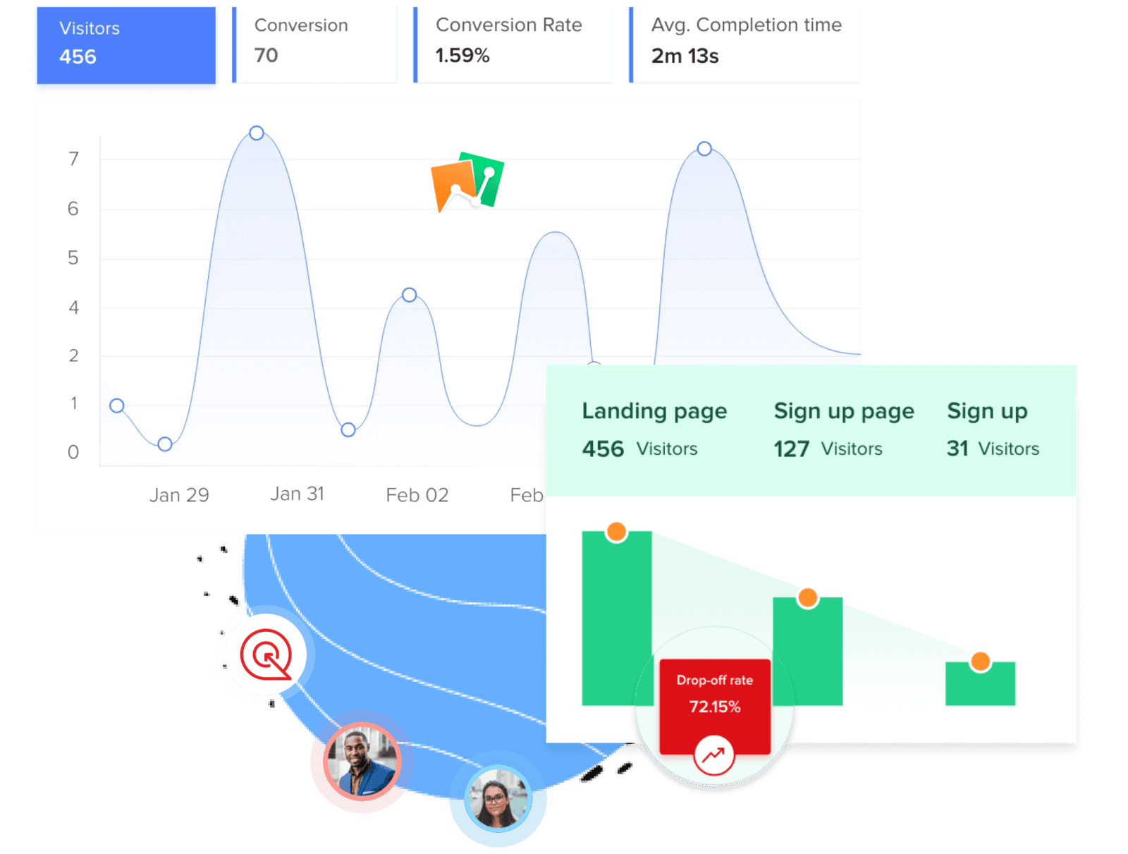 Zoho PageSense (también incluido en CRM Plus) es una herramienta de optimización de tasa de conversión (CRO) que maximiza cuántos visitantes se convierten en asistentes pagados: