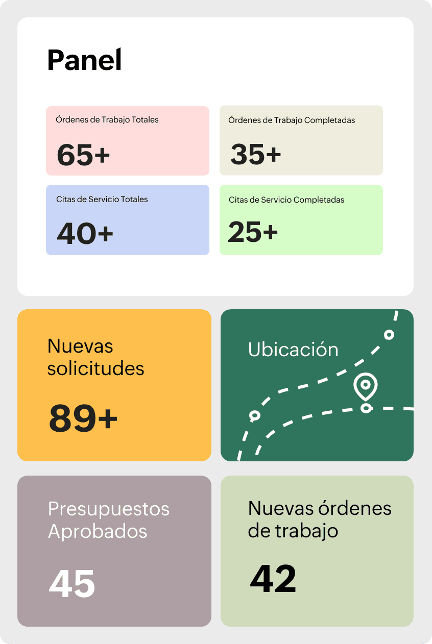 Vista de Mapa: Ve a todos tus técnicos en tiempo real. Cuando llega un nuevo trabajo, identifica instantáneamente quién está más cerca. Esto reduce significativamente los tiempos de viaje y los costos de combustible.