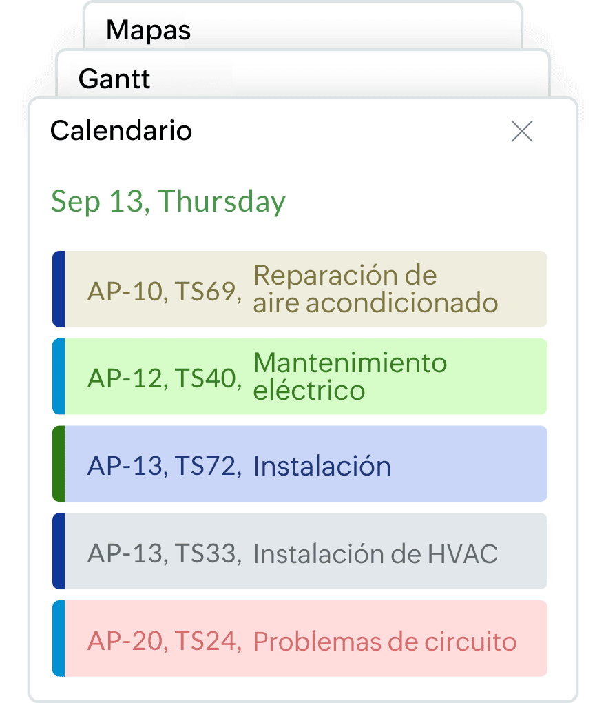 Vista de Calendario: Ve los horarios de todos tus agentes y cargas de trabajo. Identifica inmediatamente quién tiene capacidad. No hay más sobreasignación o recursos ociosos.